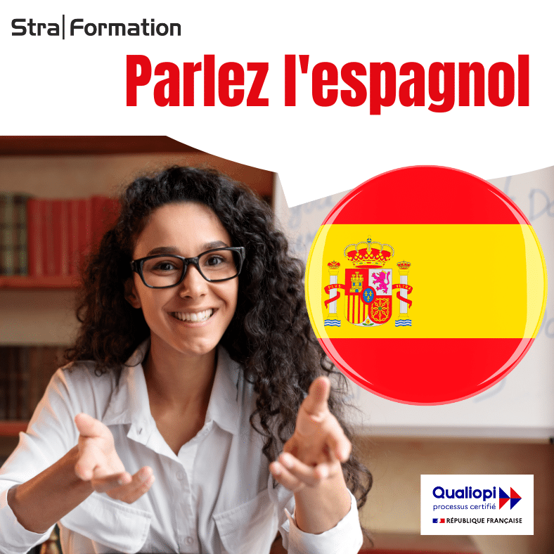 Durée de la formation : 10h à 500h La formation en espagnol peut être en intensif. Public concerné : Tout public La formation en espagnol est éligible au CPF. Lieu(x) : En ligne en visio : dans toute la France. En entreprise : dans toute la France. Notre centre de formation en espagnol pour les cours en présentiel se situe en Alsace, dans le Bas-Rhin au 21 Rue d'Oslo, 67000 Strasbourg sur nos autres sites dont Mulhouse et Colmar Prérequis : Aucun quantité de Cours d'Espagnol (à Strasbourg en présentiel / en ligne à distance) Contactez-nous Éligible au CPF Code RS Certification Objectif(s) : de la formation Cours d’Espagnol (à Strasbourg en présentiel / en ligne à distance) Apprenez l'espagnol à votre rythme, avec vos objectifs et sans stress ! Des cours 100% personnalisés, en présentiel ou en visio, quand vous voulez et où vous voulez. Découvrez Straformation, la méthode révolutionnaire pour apprendre l'espagnol en toute confiance. Votre Passeport pour le Monde Hispanophone Parlez espagnol couramment et ouvrez-vous à de nouvelles opportunités : Voyagez et communiquez avec les habitants du monde entier. Développez vos compétences professionnelles et boostez votre carrière. Accédez à de nouveaux contenus culturels et enrichissez votre vie. Des Cours 100% Adaptés à Vos Besoins Straformation s'adapte à vos objectifs, votre rythme d'apprentissage et votre style pédagogique. Choisissez votre fréquence de cours : 1h, 2h, 3h par semaine... C'est vous qui décidez ! Définissez vos objectifs : conversation, voyage, examens, etc. Choisissez votre format : cours individuels ou en groupe, en présentiel ou en visio. Apprenez avec la méthode Straformation : une approche pédagogique innovante et ludique qui vous permet de progresser rapidement et en toute confiance. Des Professeurs Natifs Certifiés et Expérimentés Nos professeurs sont natifs et passionnés par l'enseignement. Ils vous accompagneront tout au long de votre parcours d'apprentissage. Ils vous aideront à surmonter vos difficultés et à développer vos compétences linguistiques. Ils vous motiveront et vous donneront confiance en vous. Financez vos cours d'espagnol avec le CPF Le Compte Personnel de Formation (CPF) peut financer tout ou partie de vos cours Simple et rapide à utiliser Straformation est un organisme de formation qualiopi Cumulable avec d'autres aides au financement Prêt à Parler Espagnol ? Contactez-nous dès maintenant pour un bilan pédagogique gratuit ! Programme : de la formation Cours d’Espagnol (à Strasbourg en présentiel / en ligne à distance) Programme mis à jour le 20/04/2026. Il est à titre indicatif et sera adapté à vos besoins / objectifs. (Articles L. 6316-1 et R.6316-1 et suivants du Code du travail) S’initier avec notre formation à l’espagnol général Cours Espagnol - Niveau débutant A1 - A2 Compréhension écrite Nous mettons en place une démarche affinée en fonction de vos intérêts pour vous fournir les connaissances fondamentales en espagnol ; vous maîtriserez le vocabulaire de base, vous saurez opérer avec des séries de synonymes et d’antonymes etc. L’objectif est de réussir à s’exprimer de manière correcte et compréhensible. Production écrite Le niveau espagnol débutant vous transmet les acquis indispensables pour la rédaction des textes simples, en assimilant les règles de base de la grammaire espagnole (les normes de conjugaison des verbes, la phrase, les adverbes de base, les prépositions etc.). Compréhension orale Vous arriverez à comprendre facilement des conversations quotidiennes en espagnol et vous acquerrez une aisance avec l’accent espagnol, l’intonation et le rythme. Production orale L’initiation pour les débutants en espagnol vise la formation par des mises en situation ; vous pourrez vous présenter de façon cohérente, parler sur des sujets généraux et prendre part à des discussions quotidiennes supposant un lexique de base. Évaluation de compétences en espagnol Suivi personnalisé et vérification régulière des compétences ; Bilan des compétences acquises ; Attestation niveau linguistique à la fin de la formation. Voir les programmes complets : ESPAGNOL niveau A1 / ESPAGNOL niveau A2 Cours Espagnol - Niveau intermédiaire (B1-B2) B1 (Niveau de Seuil) Compréhension écrite La lecture des textes d’un niveau intermédiaire de difficulté ne vous pose pas des problèmes. Vous développez vos compétences lexicales et vous êtes familiers avec des expressions idiomatiques en espagnol. Production écrite La prise en charge au niveau B1 vous forme à la rédaction cohérente des textes dans un langage naturel et correct. Les règles de grammaire en espagnol deviennent une habitude dans votre pratique linguistique. Compréhension orale À ce niveau vos capacités d’écoute et de compréhension des conversations quotidiennes sont de plus en plus développées. Production orale En tant que locuteurs intermédiaires en espagnol, vous avez la capacité de vous exprimer de façon fluide et correcte. Voir le programme complet : ESPAGNOL niveau B1 B2 (Niveau avancé) Compréhension écrite Les stagiaires ayant des compétences avancées en espagnol réussiront à lire et analyser des textes et des articles spécialisés dans un domaine particulier. Production écrite Cette partie de la formation en espagnol vous formera à la rédaction rigoureuse des textes autour d’un vocabulaire spécifique. Vous possédez une maîtrise nette des structures des textes spécialisés et des tournures spécifiques de certaines phrases. Compréhension orale Les stagiaires seront entraînés à comprendre des dialogues d’un niveau plus complexe. Les compétences à ce niveau permettront le suivi d’une conversation comprenant des termes plus techniques. Production orale Par des mises en situation et des jeux de rôle, vous serez habitués à la pratique des conversations dans un contexte hispanophone. Vous exprim